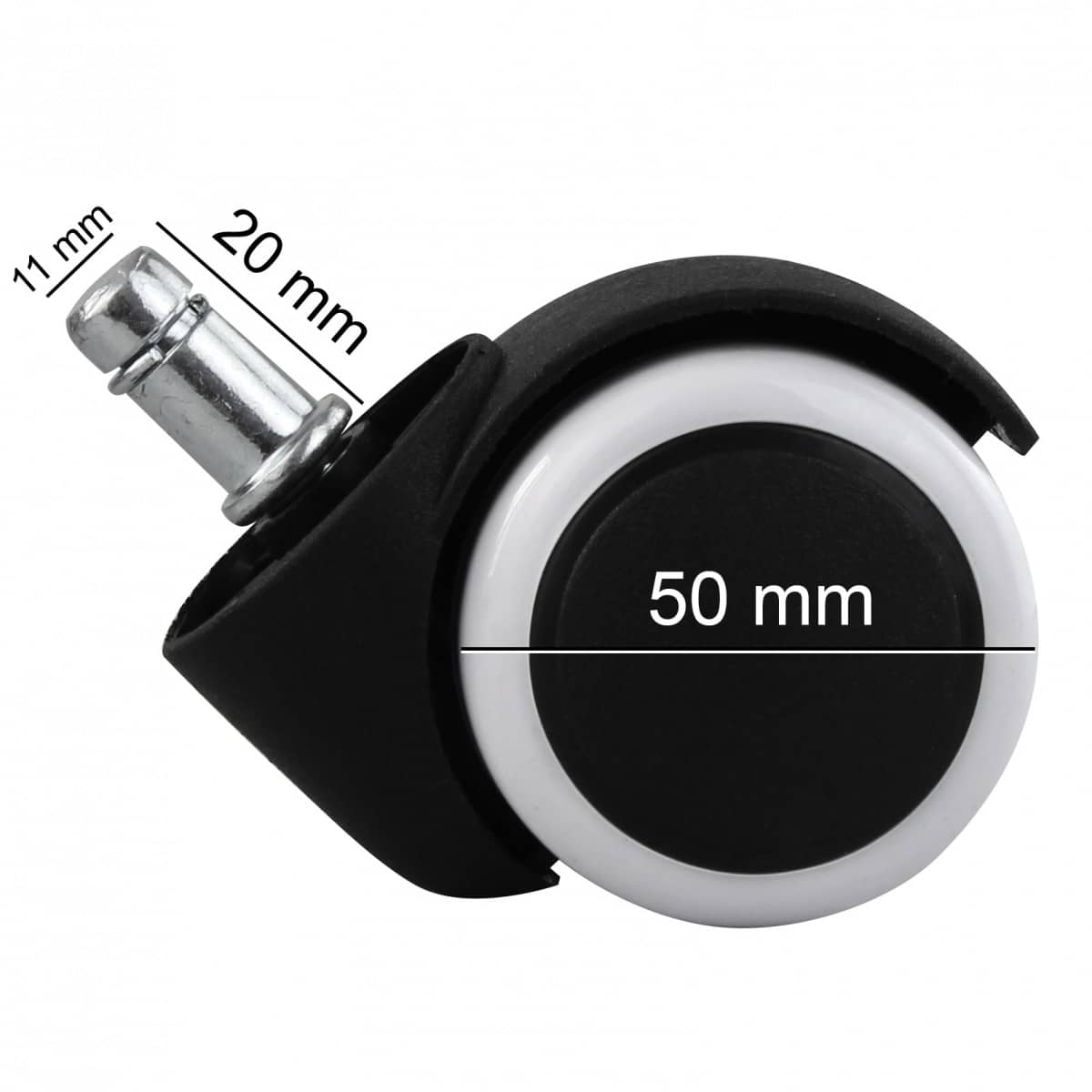 5er Set gebremste Rollen für Bürostuhl Schwarz/ Weiß 11mm/Durchmesser 50mm Hartbodenrollen Drehstuhlrollen