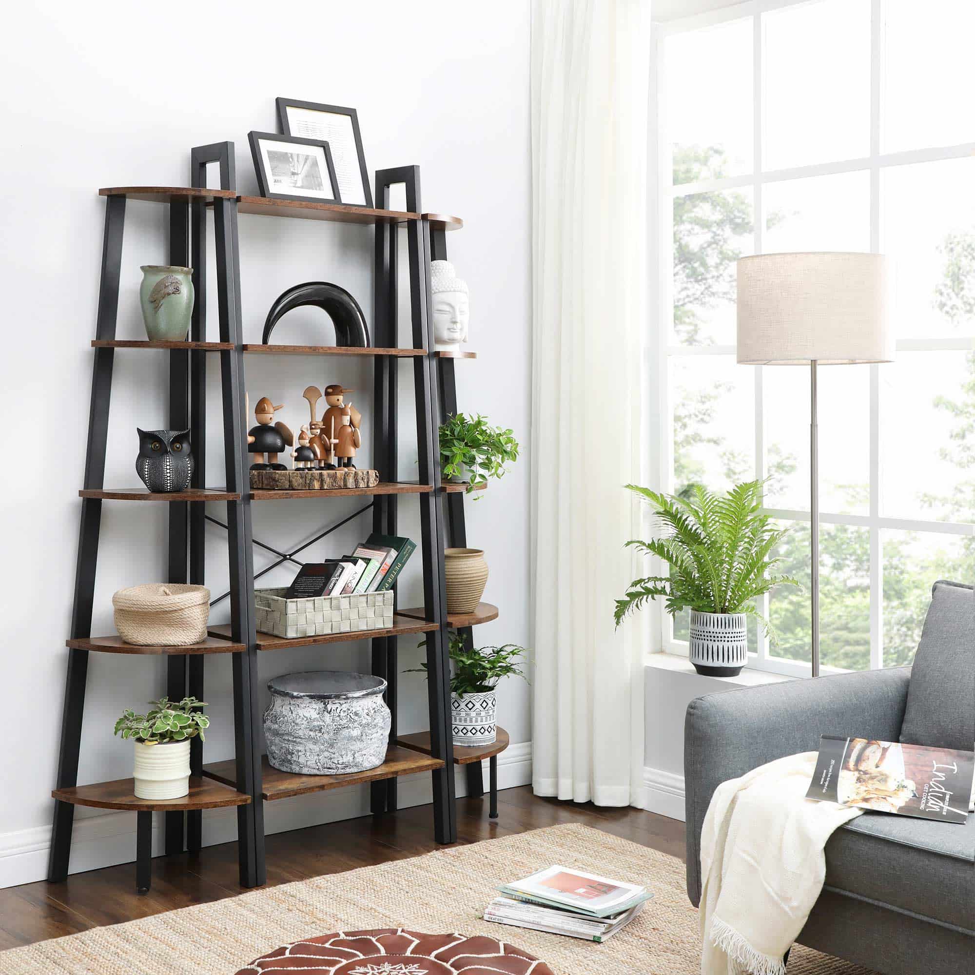 Durch den attraktiven Vintage-Stil und das funktionale Design passt das Vintage Leiterregal mit 5 Ablagen von VASAGLE in jeden Raum und ist stets ein echter Augenschmaus. Stellen Sie es ins Wohnzimmer Füllen Sie die Ablagen mit auffälligen Accessoires und machen Sie das Leiterregal so zum Mittelpunkt Ihrer Wohnung. Stellen Sie es in Ihr Büro Verstauen Sie Ihre Bücher und Dokumente ordentlich und stets griffbereit. Stellen Sie es auf Ihren Balkon Geben Sie Ihren Blumen und Grünpflanzen einen Platz an der Sonne und kreieren Sie eine Oase der Ruhe. Sie können das Bücherregal auch gemeinsam mit dem Eckregal von VASAGLE nutzen und so eine perfekte Kombination erschaffen. Suchen Sie hierzu einfach nach "VASAGLE " und finden Sie viele weitere passende Möbelstücke.